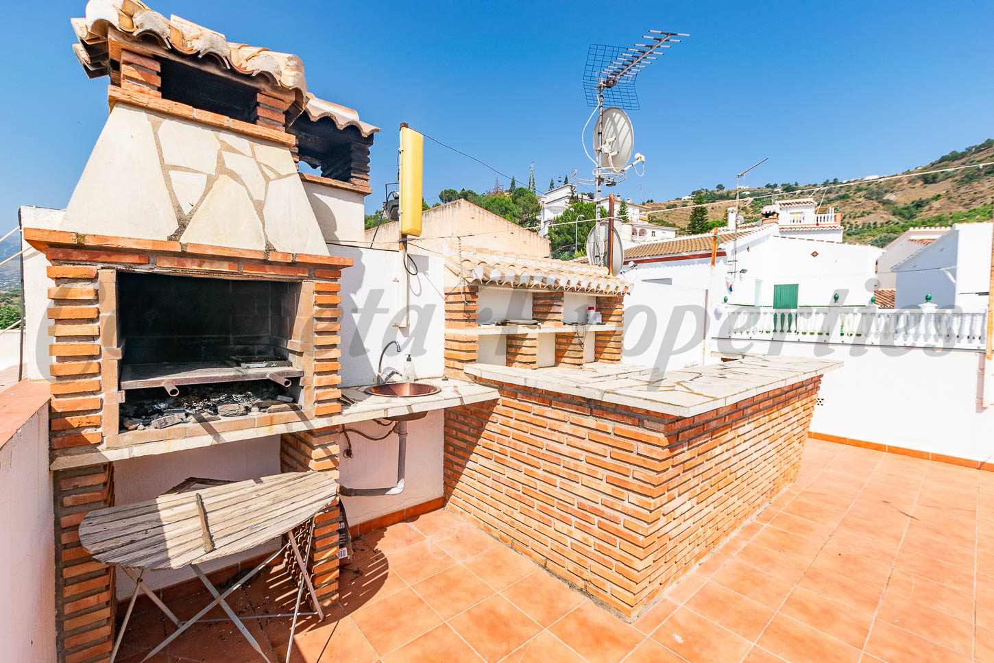 Hits: 1366 A large newly built house in a modern style located near the tourist center of the "white village" of Sayalonga just at 10 min. drive from the coast. The property has been built with high quality materials. Living acommodation comprises a living room with a decorative fireplace, TV and Radio with Home Cinema system, a fully equipped kitchen and utility room, a double bedroom with ensuite bathroom, a double bedroom and shower room. The living room and the master bedroom have access to a spacious balcony which leads onto a large terrace with Jacuzzi and summer kitchen with BBQ. There is air conditioning in the living room and master bedroom and underfloor heating in both bathrooms. It is a rare opportunity to obtain a modern and comfortable home in a traditional and romantic area within a short distance to the coast.