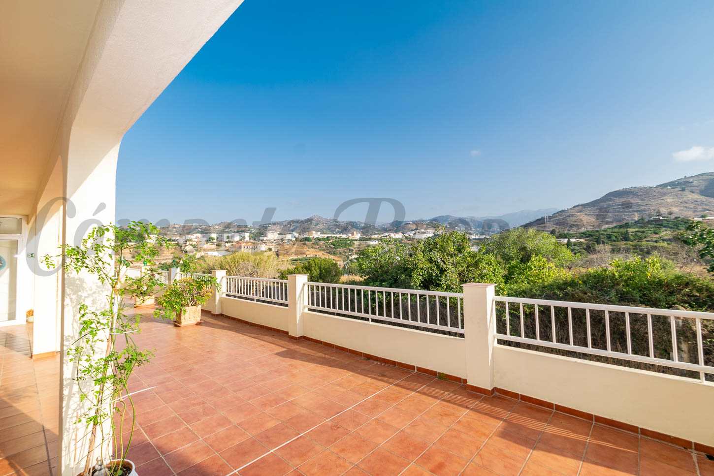 Returning to the entrance, the home opens into a generous living area that leads out to a lovely covered terrace—an ideal cozy space for winter and cooler months. Adjacent to this is the open terrace, perfect for enjoying the stunning views, relaxing in the sunshine, or starting the day with a peaceful morning coffee.