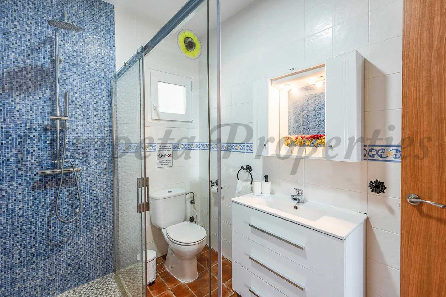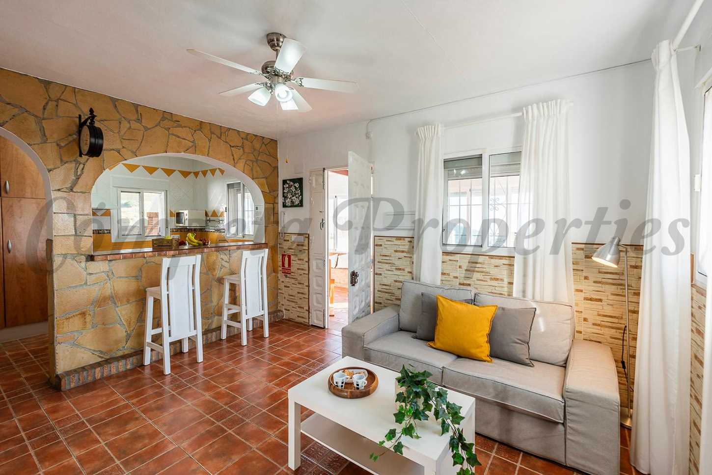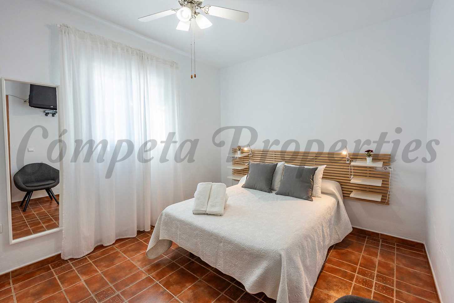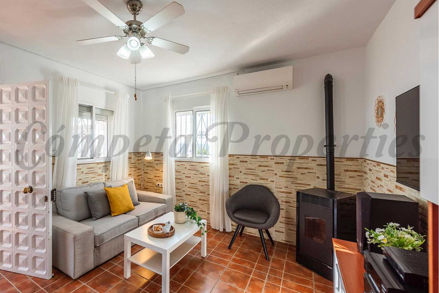 Hits: 22416 Acogedora casa de campo con piscina privada en España. Esta propiedad está ubicada a tan sólo 2 kilometros del pueblo de Cómpeta y tiene fácil acceso en su mayor parte asfaltado. Desde la terraza se puede disfrutar de unas maravillosas vistas a los pueblos de Cómpeta, Canillas de Albaida y Corumbela; las montañas y el Mediterráneo.