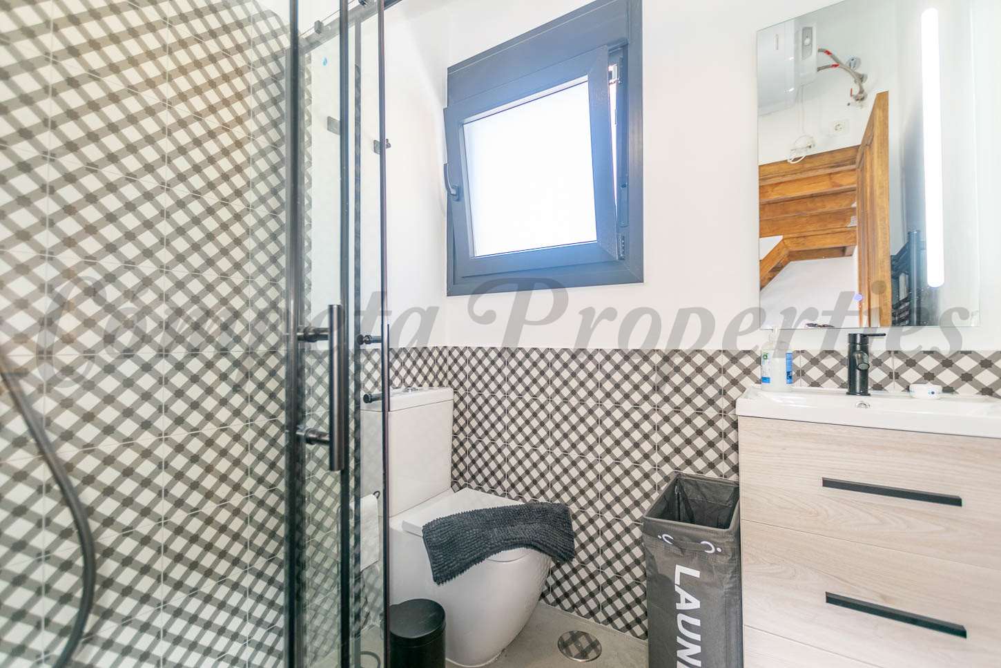 En la planta de abajo de la casa, encontramos una pequeña sala con escritorio para poder leer un libro y desconectar de nuestro día a día. La casa tiene una terraza para tomar el sol en los días de invierno.
