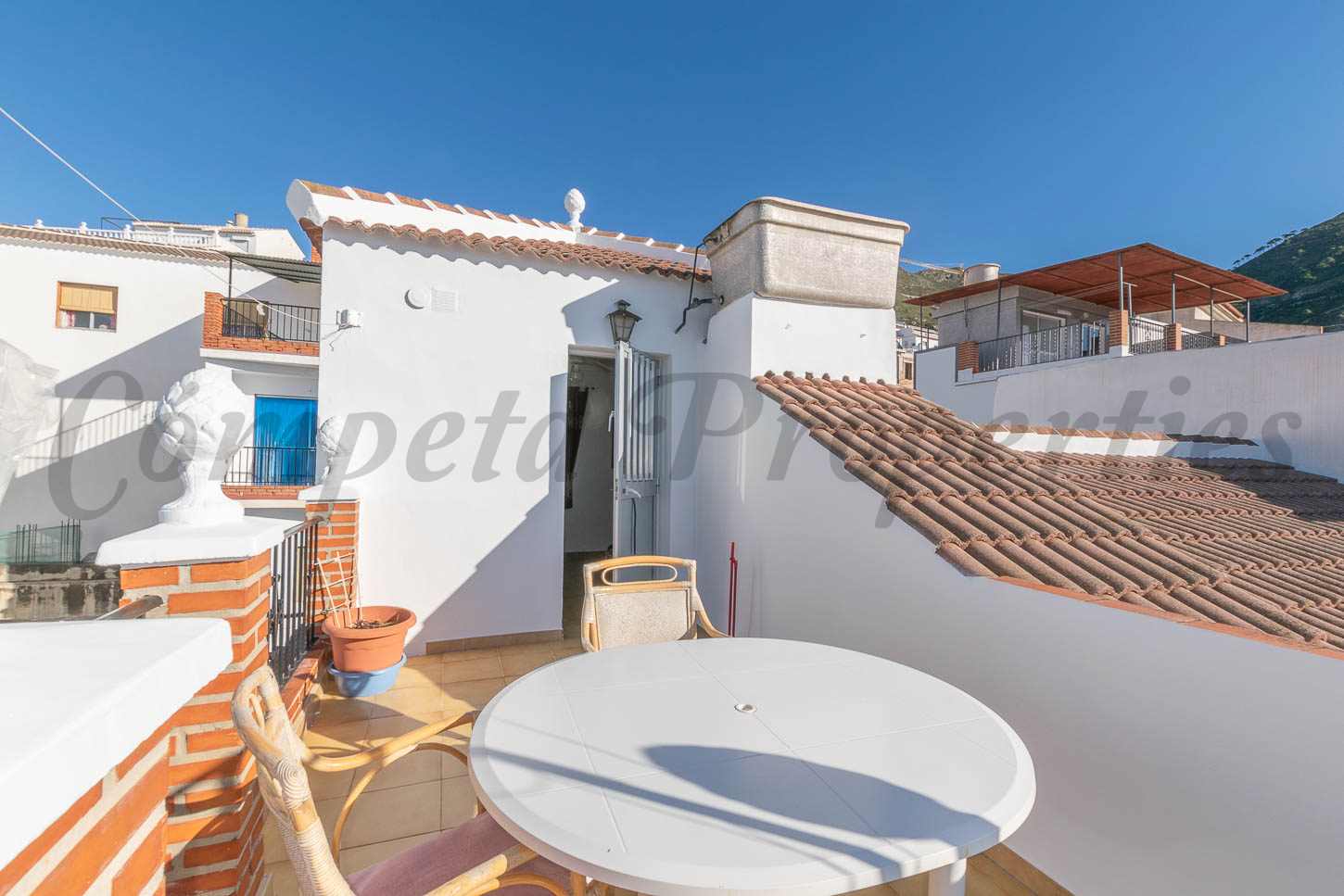 Hits: 1711 Esta tradicional casa se encuentra en la parte alta del pueblo de montaña Cómpeta , ofrece mucho espacio y posibilidad de aparcar el coche al lado. Consiste en una antesala, salita, cocina totalmente equipada, un salón grande y un dormitorio doble en la planta baja; dos dormitorios individuales, uno de matrimonio con balcón y un cuarto de baño con bañera grande en la primera planta, y en la segunda planta hay un amplio lavadero con salida a la terraza que cuenta con unas bonitas vistas panorámicas.